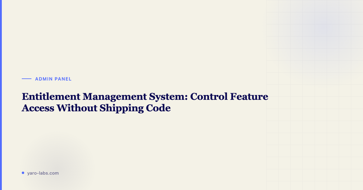Every SaaS product reaches the same inflection point: a customer asks for a custom feature flag, a trial extension, or a plan override — and your engineer has to ship a code change to make it happen. That delay costs deals, slows support, and ties your sales team's hands. The fix is an entitlement management system (EMS): a dedicated service that owns all access rules and exposes them at runtime, separate from your application code.